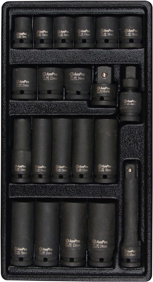 Приобрести A5616 Набор ударных головок 1/2" 21 предмет от компании AmPro (Тайвань) из раздела Ложементы пластиковые