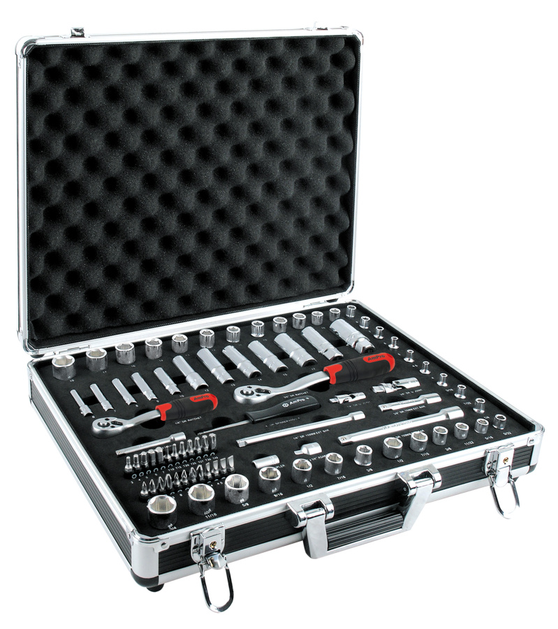 Приобрести T45907 Набор инструмента 81 предмет 1/4" и 3/8" в алюминиевом кейсе (дюйм+метрика) от компании AmPro (Тайвань) из раздела Наборы инструмента в алюминиевых кейсах