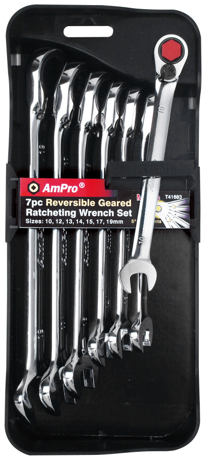 Приобрести T41683 Набор ключей комбинированных с храповиком 10-19мм, 6 предметов от компании AmPro (Тайвань) из раздела Наборы ключей по цене 4 837 рублей.
