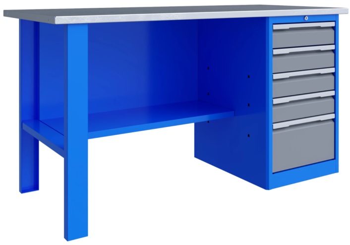 Цвет корпус - RAL5015 (синий), ящики - RAL7037 (серый), ручки ящиков - RAL9006 (серый).
