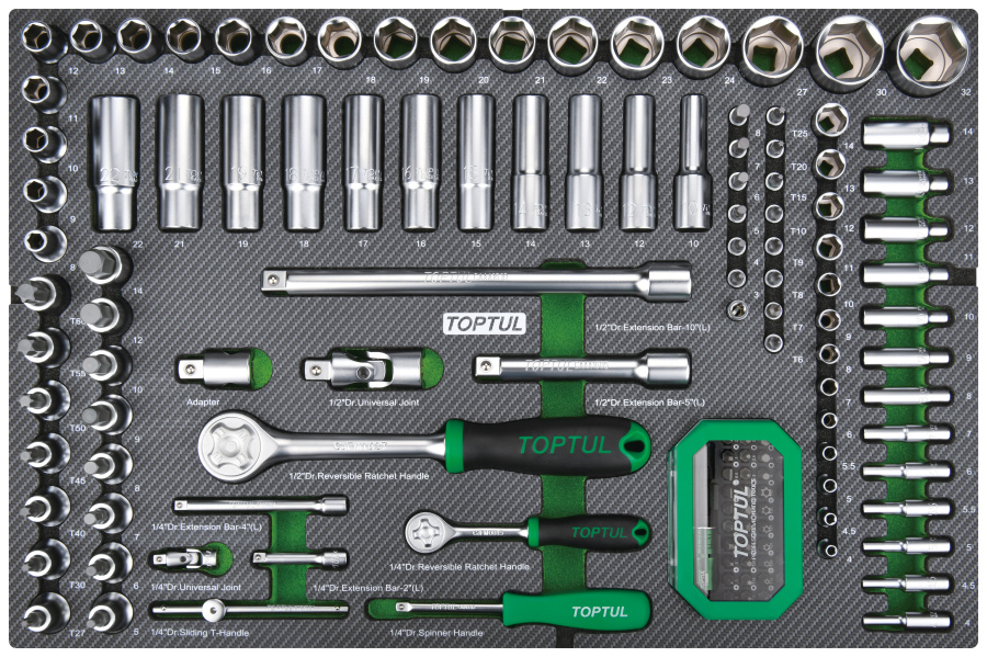 Набор головок и аксессуаров 1/4" и 1/2" 6-гр.,133 пр. в мягком ложементе TOPTUL GEDD348 купить в Ставрополе и других городах России