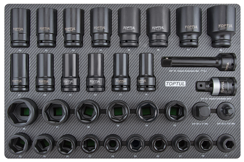 Набор ударных головок 3/4'' 17-46 мм короткие и длинные, 34 пр. в мягком ложементе (D) TOPTUL купить в Ставрополе и других городах России