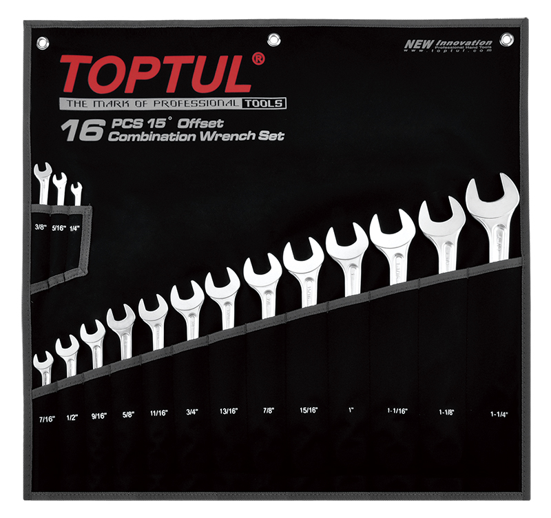 Набор ключей комбинированных дюймовых 1/4"-1-1/4", 16 предметов на полотне TOPTUL GPBX1601 купить в Ставрополе и других городах России