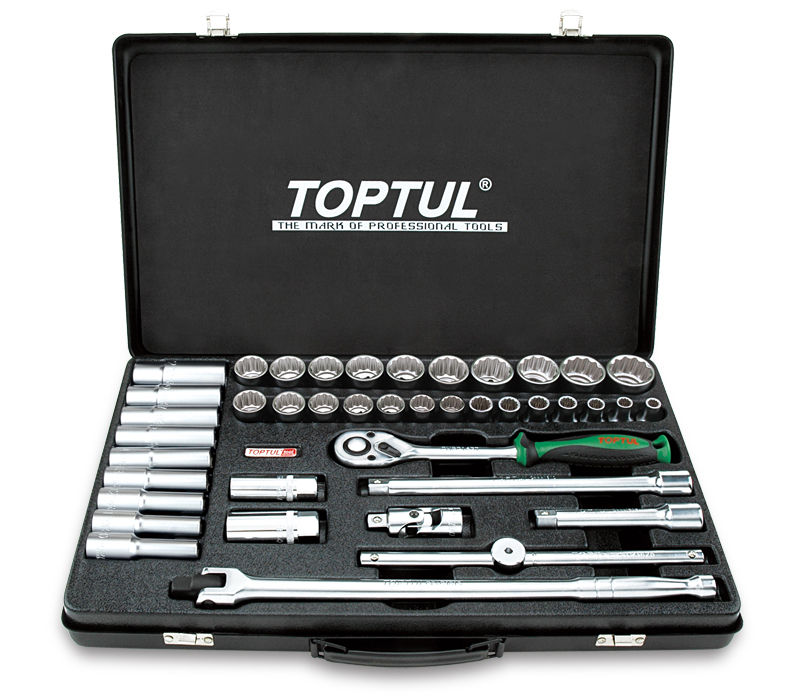 Набор головок и аксессуаров 1/2" 12-гранных 8-32 мм, 41 предмет в метал. кейсе TOPTUL GCAD4103 купить в Ставрополе и других городах России