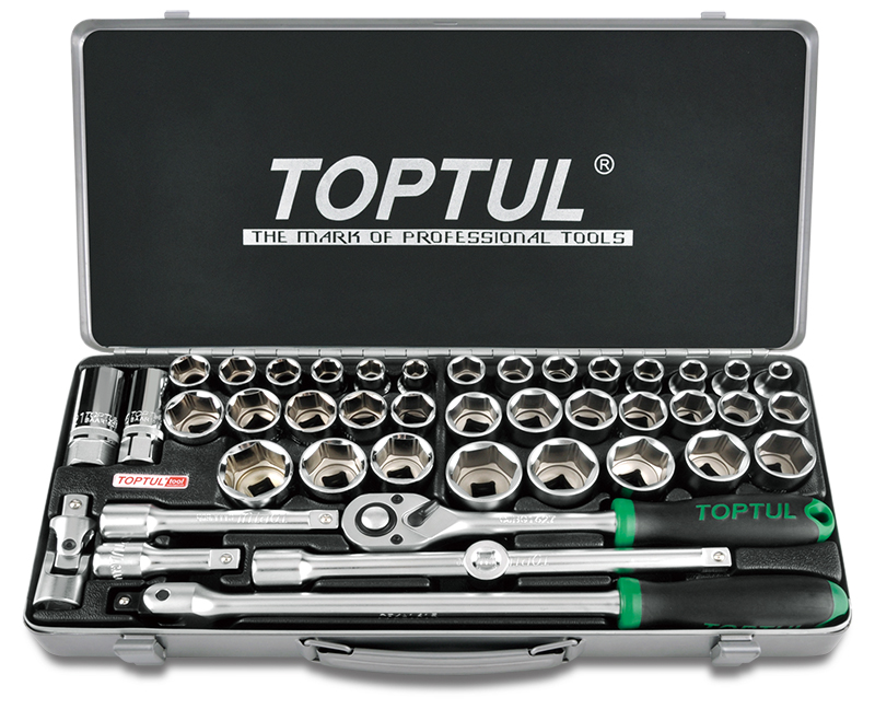 Набор головок и аксессуаров 1/2" 6-гранных 8-32 мм, 43 предмета в метал. кейс TOPTUL GCAD4303 купить в Ставрополе и других городах России