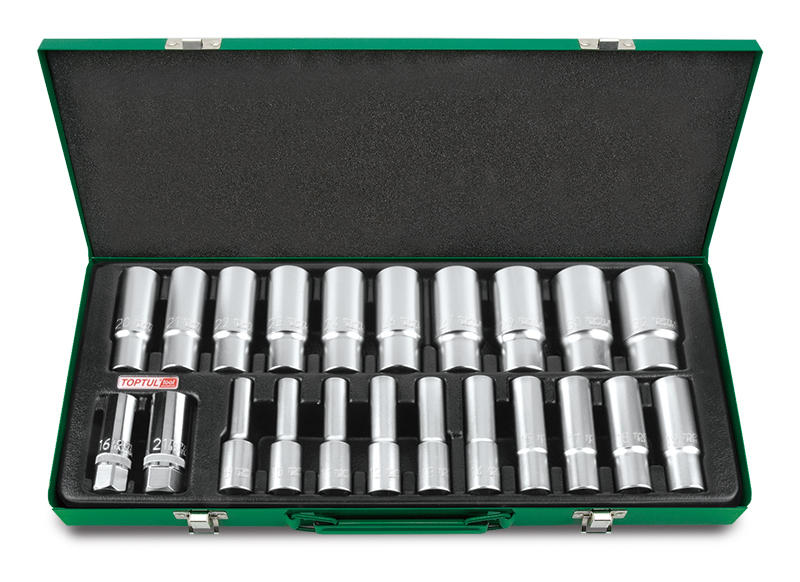 Набор головок удлиненных 1/2" 6-гранных 8-32 мм, 22 предмета в метал. ящике TOPTUL купить в Ставрополе и других городах России