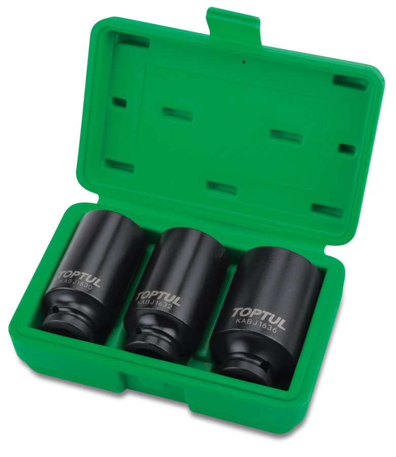 Приобрести Набор ударных головок удлиненных для ступичных гаек 1/2" 12-гр., 30, 32 и 36 мм, 3 предмета TOPTUL GDAI0303 от компании Toptul (Тайвань) из раздела Наборы ударных головок по цене 5 261 рублей.