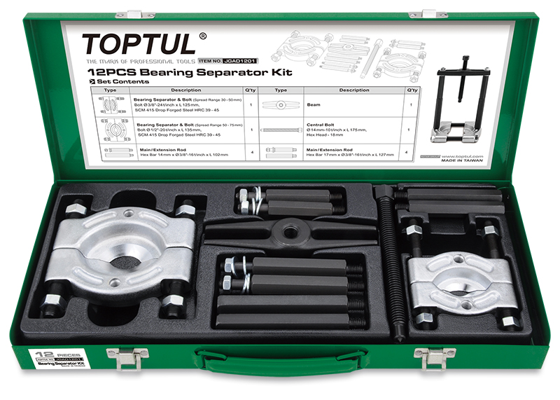 Набор съемников сепараторного типа 30-50, 50-75 мм, 12 предметов в метал. кейсе TOPTUL купить в Ставрополе и других городах России